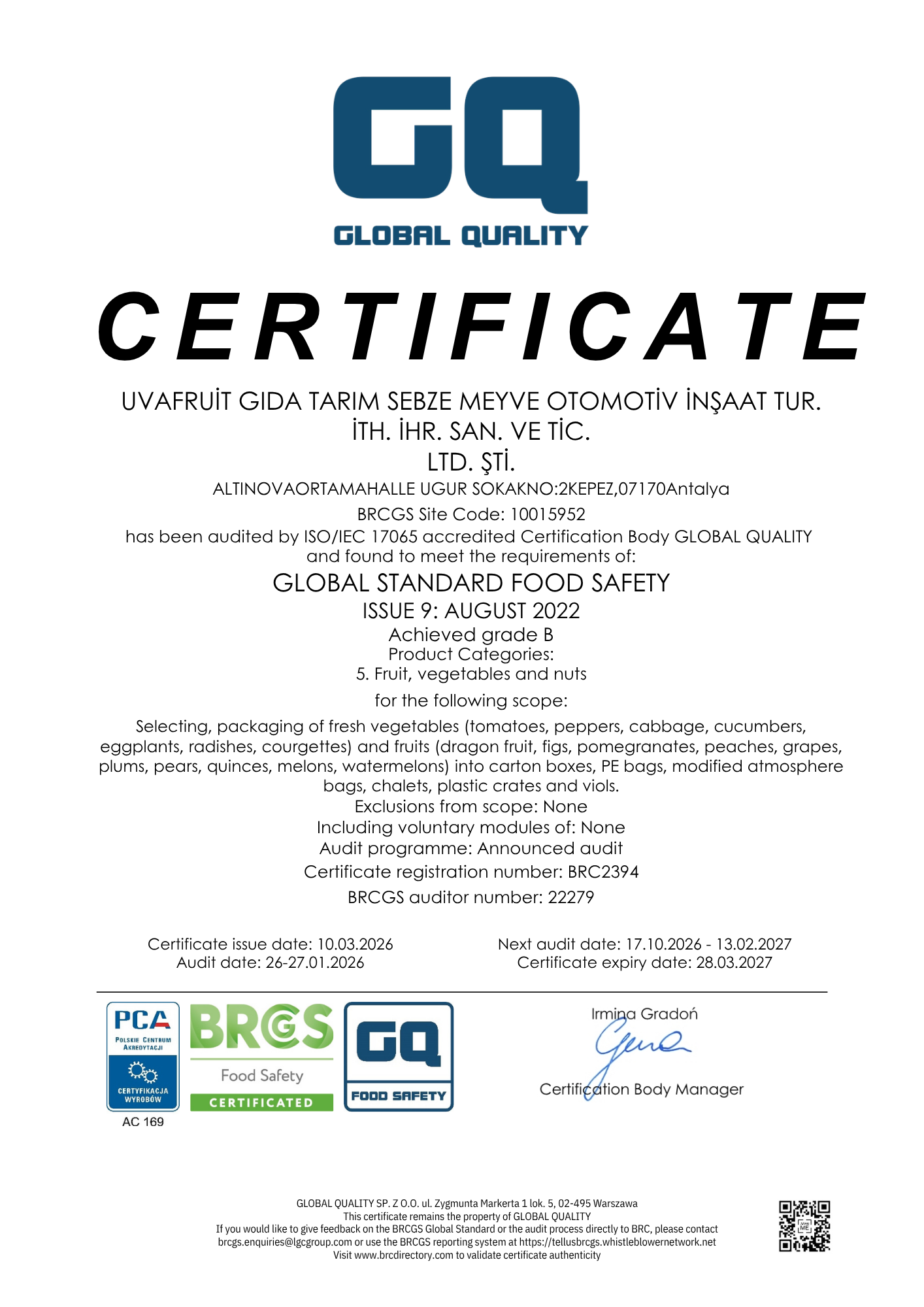 UVAFRUIT GROUP, kalite sertifikaları ve üretim için gerekli yetki belgelerimiz, Markta tescil ve kurumsal tüm izin belgelerimiz.